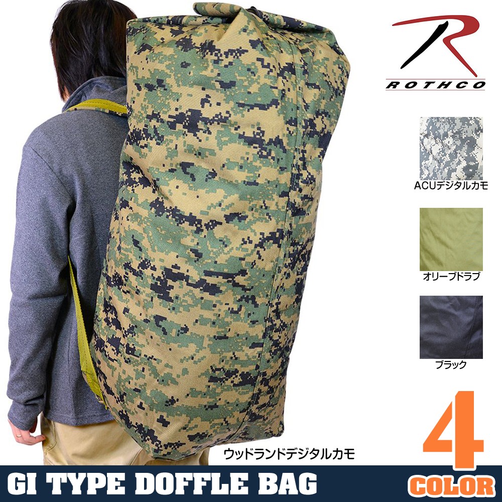 ミリタリーブランドROTHCO製、G.I.スタイルのダッフルバッグです。ハト目、金具だけでロックするズタ袋のような大容量バッグ。丈夫な1000デニールナイロンは撥水性素材なので、多少の小雨に耐えることが可能です(完全防水ではありませんのでご注意ください)。