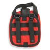 このメディカルポーチはポーチ本体部とベース部に別れており、ベース部はモールベストなどに接合するモールストラップ、脱落防止用ストラップ、金属製Dリングが2個縫付けられ、本体部との着脱はベルクロにて行います。ポーチ本体の内部は三つに折り畳んで収納する様になっており、これはポーチ開時に内容物の自重で勝手に展開する構造。