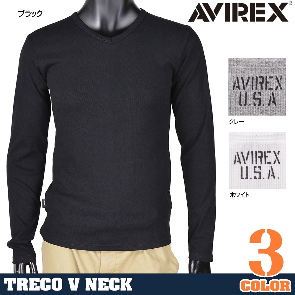 フィット感の高いテレコ素材を使用し、襟元はすっきりしたVネックを採用。後ろ首元に「AVIREX U.S.A.」の文字がプリントされています。