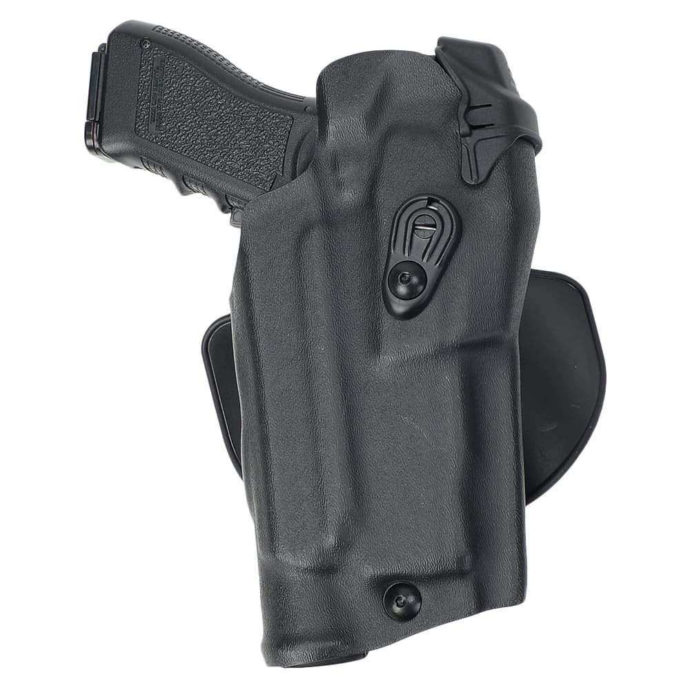 銃を差し込むだけで自動的にロックする オートロックシステム(ALS)を採用しており、親指でレバーを下げるとロックが解除されます。