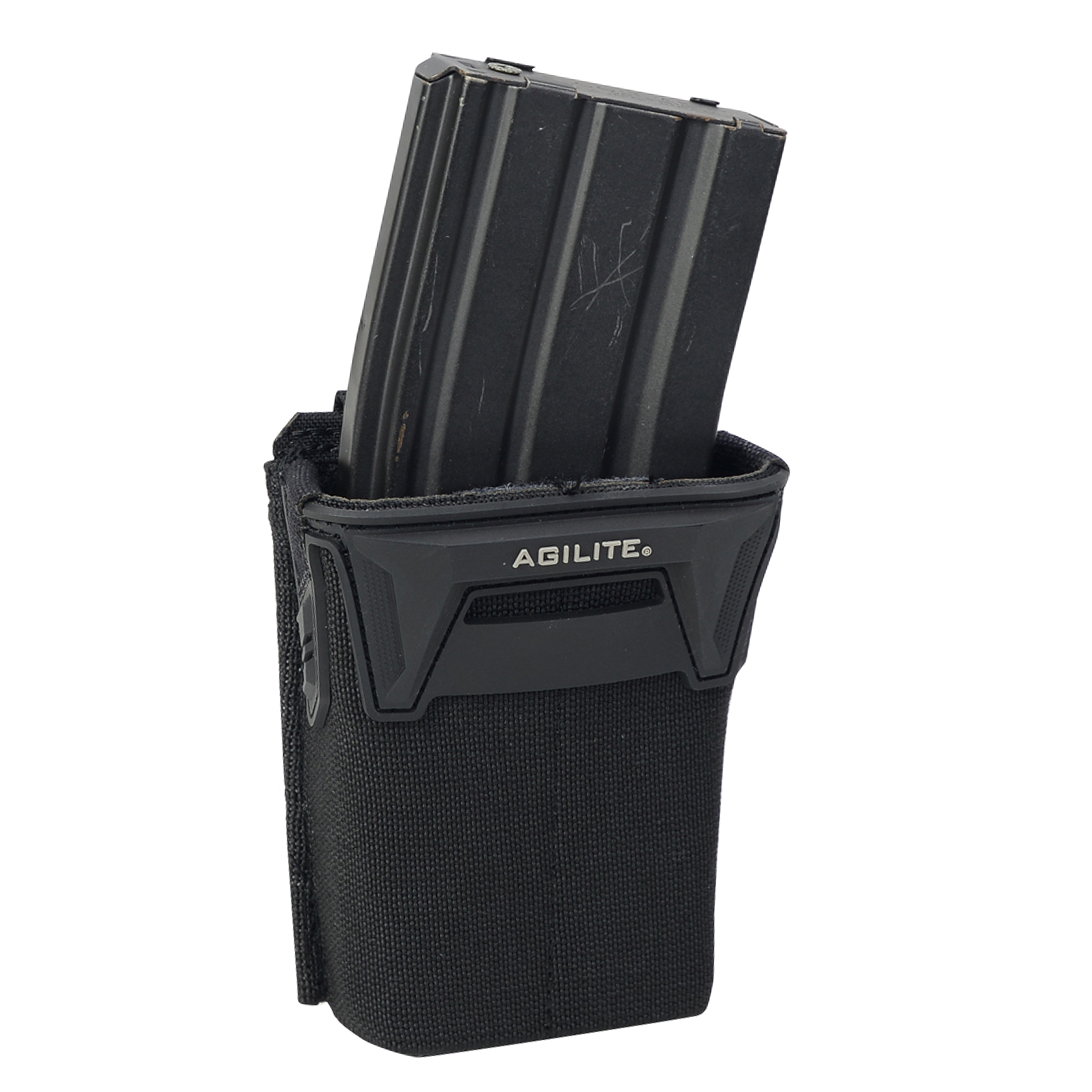 エラスティックナイロン素材がしっかりとしたテンションでマガジンを保持し、走ったり倒れこんだりしても脱落の心配がありません。
