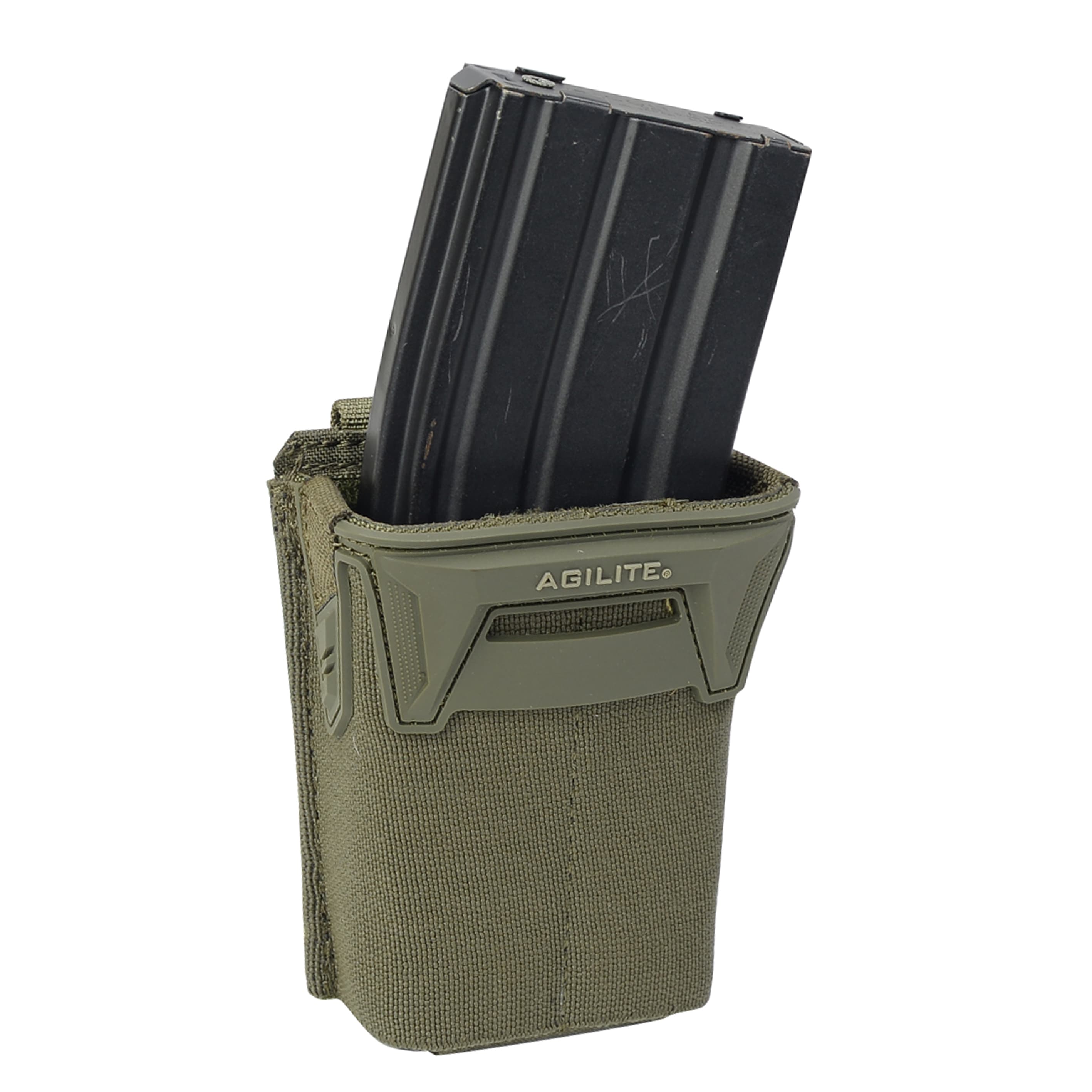 ポーチ上部の軟質樹脂パーツが常に開口部を広げた状態にキープし、片手でスムーズにマガジンを挿入できる画期的なデザインが特徴のマグポーチ「PINCER(ピンサー)」シリーズの「Single .308 Mag Pouch (ピンサーシングル 308 マグポーチ )」。
