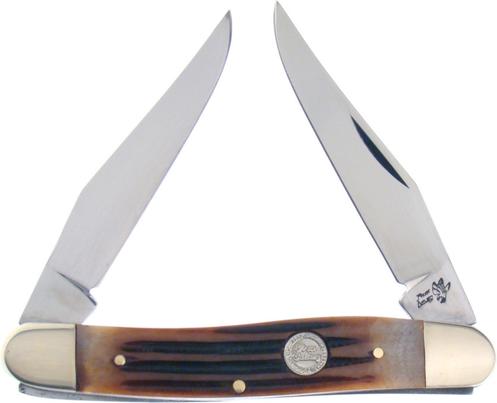 ナイフを閉じた状態で約3.88インチ(9.86cm)。ミラーフィニッシュステンレスデュアルクリップブレード。セカンドカットボーンハンドル。ニッケルシルバーのボルスター。インレイシールド。