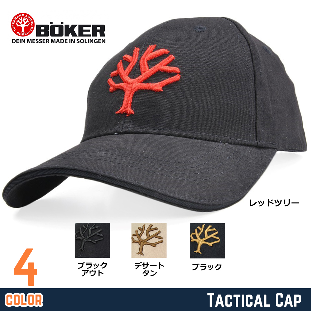 フロント部分にブランドのロゴマークである枝を伸ばした木が大きく刺繍された、BOKER(ボーカー)のキャップです。