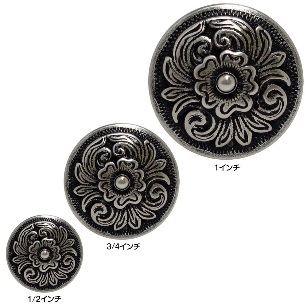 アンティークシルバー調のラウンドコンチョです。花模様が施された定番コンチョ。裏面にシカゴスクリュー付き。