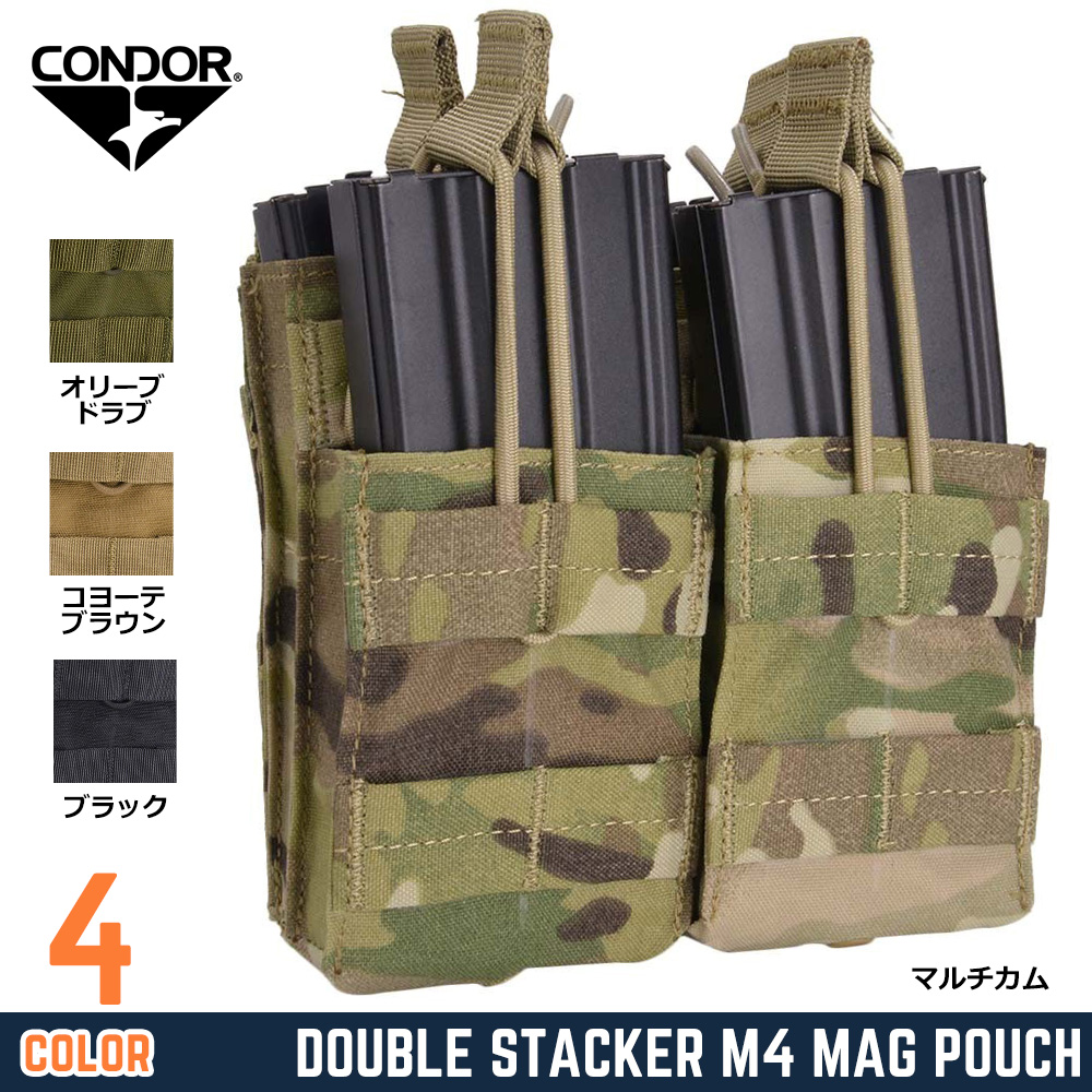CONDOR OUTDOOR(コンドルアウトドア)社のM4、M16マガジンに適合した、ダブルスタッカーM4マグポーチです。適合マガジンを最大4つ収納することが可能。