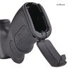 グリップの内部には予備のバッテリーやメンテナンス用品を持ち歩けるよう、収納スペースが備えられています。底が蓋になっていて、蓋を閉めるとツメがかかり、ツメを押すことでロックが外れて蓋が開く仕組みなので、激しく動いても不用意に収納物を落とす心配がありません。