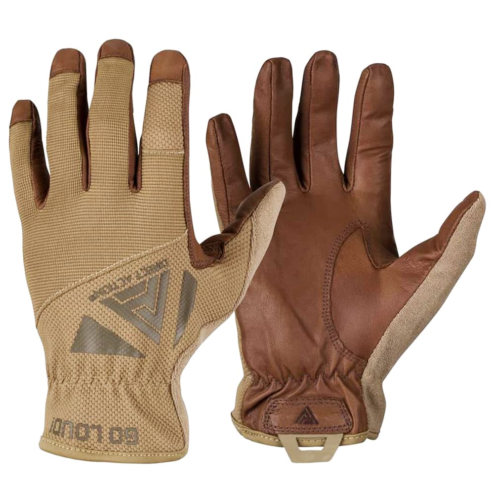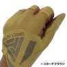 最大の特徴は、手のひら全体に使用されたヤギ革(ゴートレザー)。しっかりとしたグリップ力を発揮し、ハンドガンやライフルを問わず確実な保持を可能にします。天然皮革ならではの柔軟性があり、使い込むほどに手に馴染んでいきます。