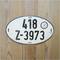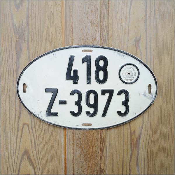 ドイツの楕円形旧ナンバープレート「418 Z-3973」です。ドイツで実際に使用されていた物でキズ、汚れ、ヘコミなどあり、ヴィンテージな外観。1967〜88年の約20年間ドイツで使用されてきました。ナンバープレートの右上には、「ZOLLAMT KORNHAUSBRUCKE HAMBURG」とドイツの国章をスタンプ。ヴィンテージな雰囲気で、お部屋のインテリアや、お店のディスプレイなどにおすすめです。