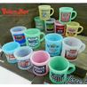 ミルキーガラスの様な透明感をプラスチックで再現したマグカップです。コーヒーや飲み物を入れるとうっすら透けて見えます。[注]絵付けに若干の塗りむらがある場合がありますのでご了承ください。