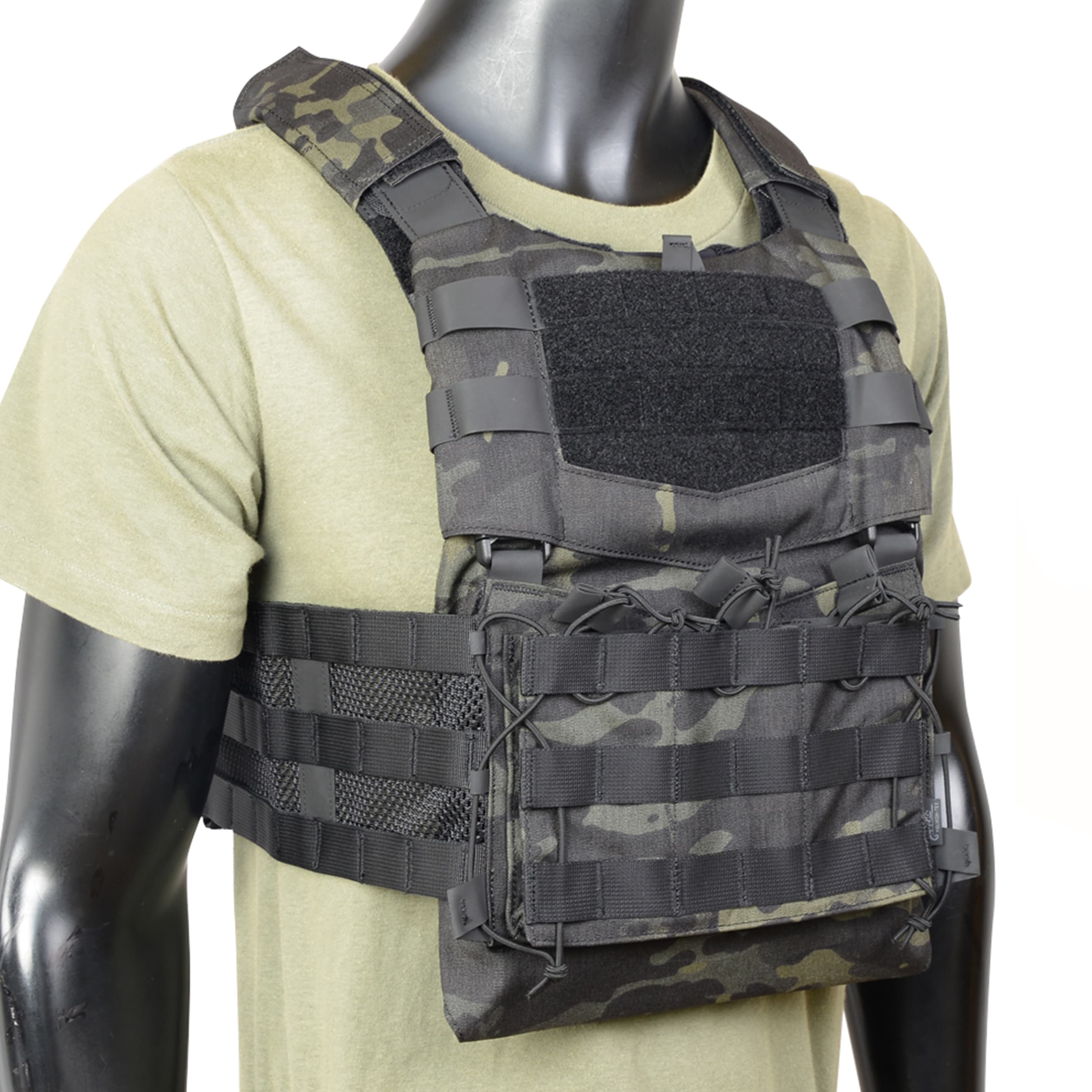 前後のプレート挿入部は伸縮性のある素材「Versastretch」でつくられているので、様々な形状や厚さのプレートに適応します。また、MOLLE/PALSに対応しているので、状況に合わせて必要なアクセサリーを取り付け可能。
