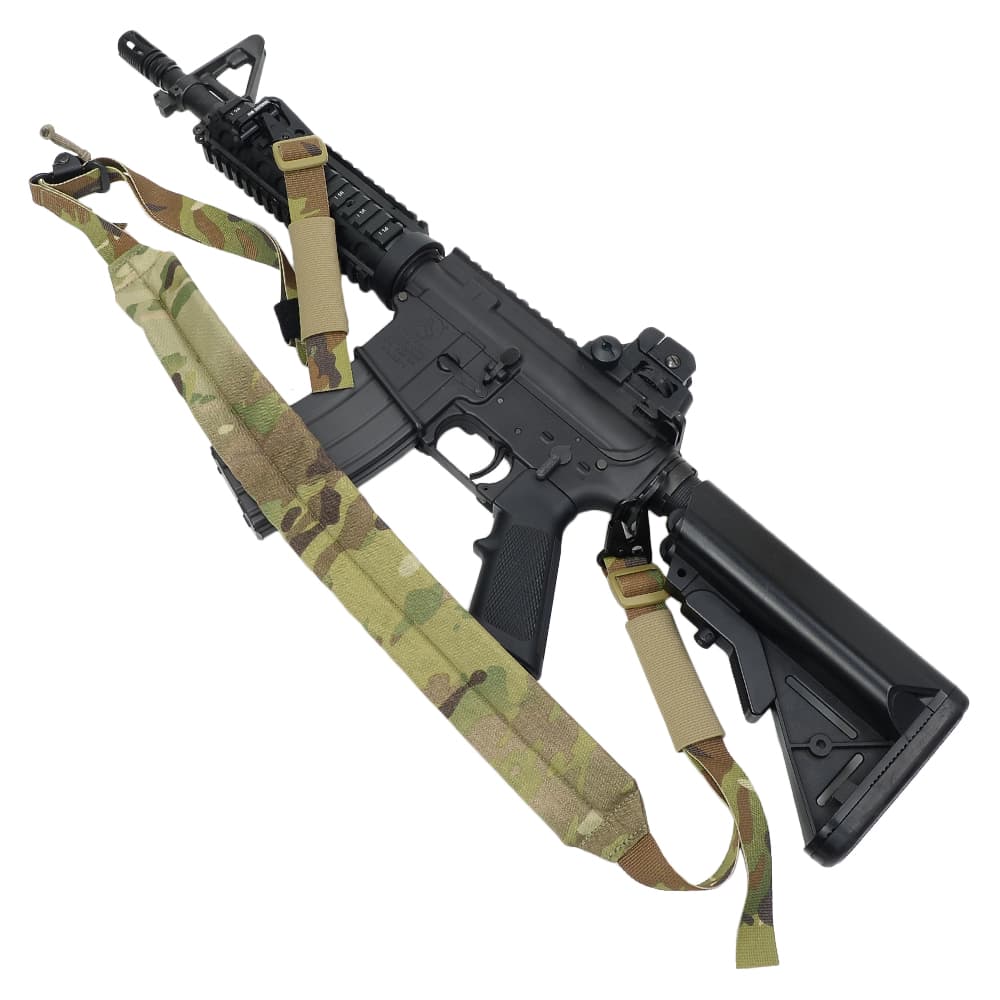 今までは10インチ未満の銃をワンポイントスリングで吊るしていたのですが、新たに14インチの銃を購入したので、しっかりと保持できそうで、値段もそんなに高くないこの商品を購入しました。分厚過ぎず、薄過ぎない厚み(実測では5㎜くらい)のパットが内蔵されていて、肩が痛いということもないし、バックルの紐を引けばスムーズに射撃姿勢を取りやすい長さにスリングを調整出来ます。また、スリングの余りを留めておくベルクロがついており、別売のウェブドミネータなどを使用しなくても余り部分がプラプラしないので、地味に気に入っている部分ではあります。ただ、元からついている消音スリーブのゴムのテンションは意外に強く、動かすのが地味に面倒に感じました(ただ私が面倒くさがりなだけでしょうが)。全体的には良い商品なので、オススメです。
