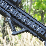 ガングリップは、エアガンを構える際に手で握る部分です。主にピストル型のエアガンでは銃本体の下部に位置し、射撃時の安定性や操作性を高める重要なパーツです。素材は樹脂やゴム、木製などさまざまで、形状や表面の滑り止め加工によって握りやすさや反動のコントロール性が変わります。カスタム用グリップでは、手の大きさや好みに合わせて選べるよう設計され、ドレスアップパーツとしても人気です。