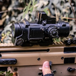 チューブタイプのドットサイトは、金属製の円筒(チューブ)構造を持つ照準器の一種で、主にライフルやエアガンなどに装着される光学サイトです。内部にLEDなどの光源を備え、レンズに赤や緑のドット(点)を投影して照準点を示します。チューブ形状により外光の影響を受けにくく、視界が安定しています。オープンタイプに比べて重量はやや増しますが、精密な狙撃や長距離射撃に向いています。