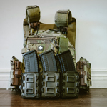 プレートキャリアは、心臓など胴体の重要な部位を自動小銃の弾頭から確実に防御するために開発されました。前後に防弾のプレートを入れることができ、PALSのプラットフォームとしてポーチなどの装備を容易に増設することができます。そのため、兵士は任務に応じて必要な装備を柔軟に組み合わせることが可能です。市街地戦や局地戦闘、短期間ミッションに使用される優れた軍装備です。