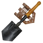 エントレンチツールは、Eツールとも呼ばれる軍用スコップです。塹壕(トレンチ)や溝を掘るために兵士が身に着けていた道具で、戦場での生存率を高めるために欠かせない装備の一つでした。近年のEツールは、柄の付け根で直角に折曲げ可能で、鍬のように使え、穴掘りだけでなく、土を耕など作業も効率的に行えます。スコップより短く頑丈な形状は、塹壕戦も想定したためです。