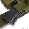 オープントップ方式でフラップ(蓋)はベルクロ固定。また、フラップ(蓋)部分はベルクロで長さ調整が出来き、ポケット部分外周部のゴムバンドによる締め付けでマガジンを保持出来ます。
