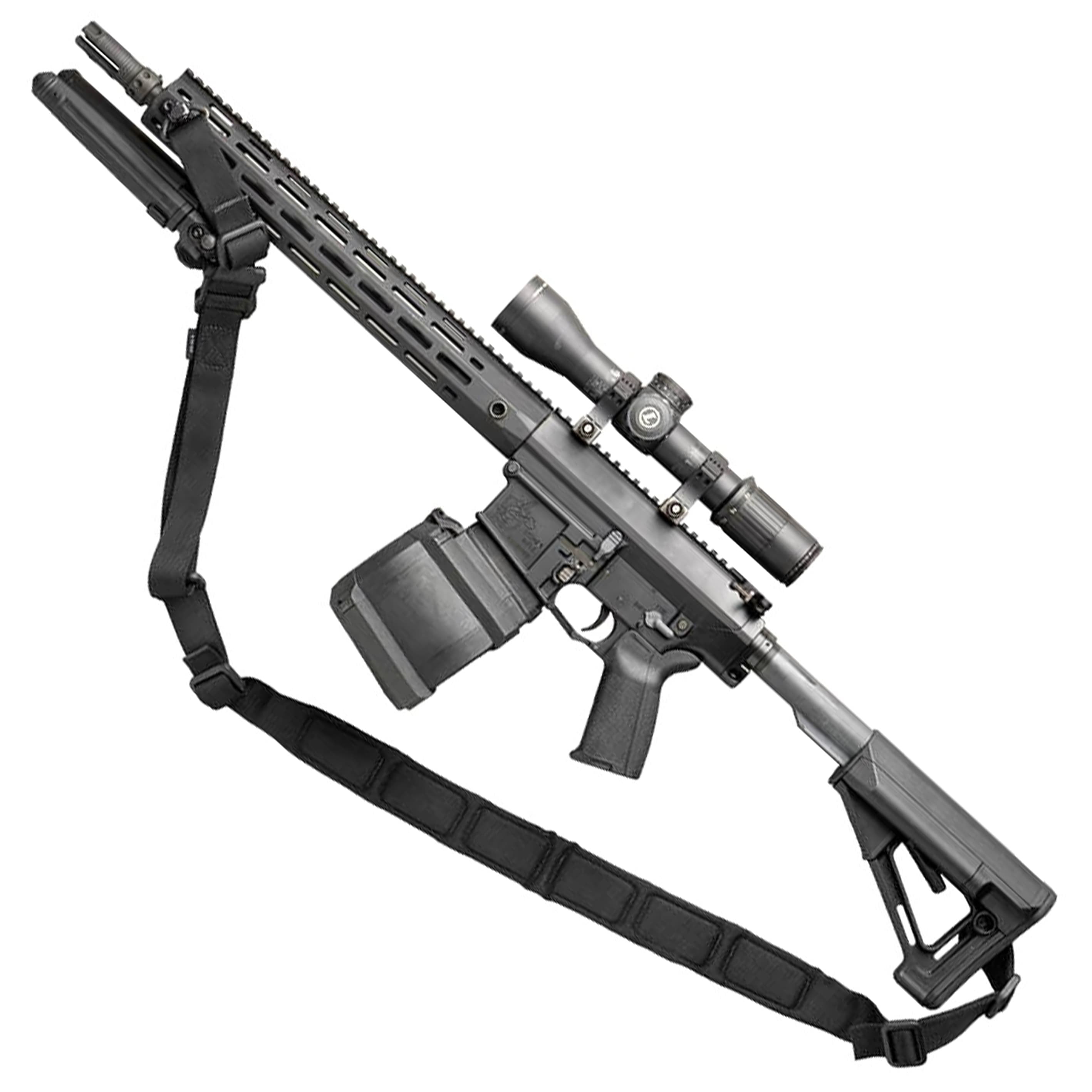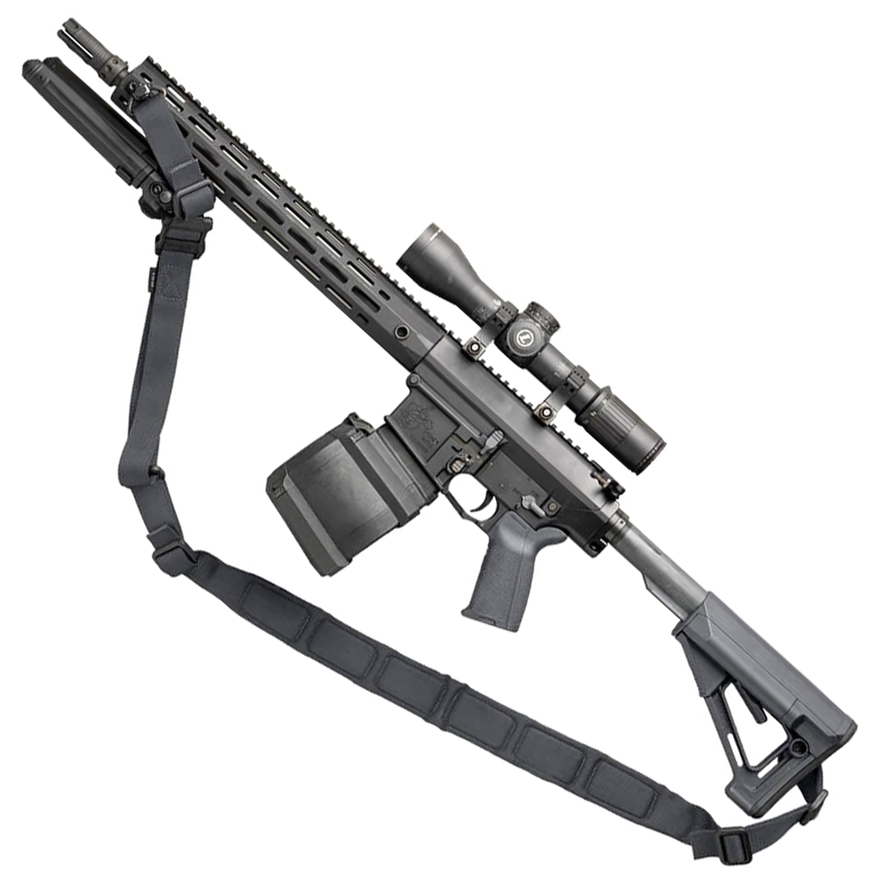 そのまま2点式スリングとして使用できるほか、別売りのアタッチメントを組み合わせれば1点スリングとしても運用可能。ラフな運用に耐える強靭さと、長時間の携行でも快適なフィット感を両立した、MAGPULらしい品質の高いスリングです。