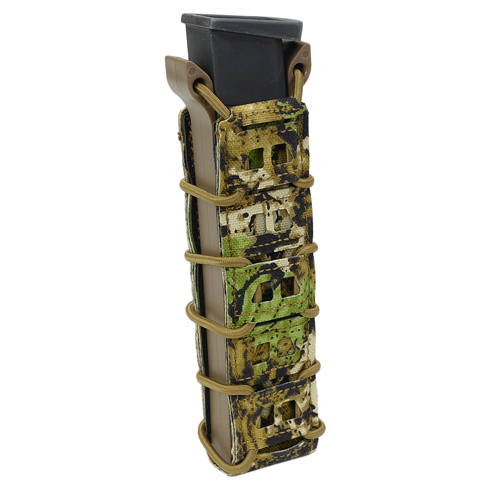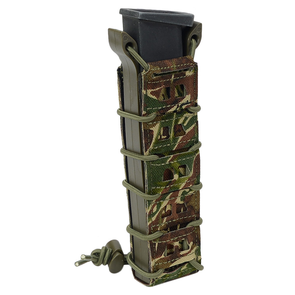 ピストル用のロングマガジンに加え、サブマシンガン用マガジンも収められる、SMG用オープンマグポーチ。