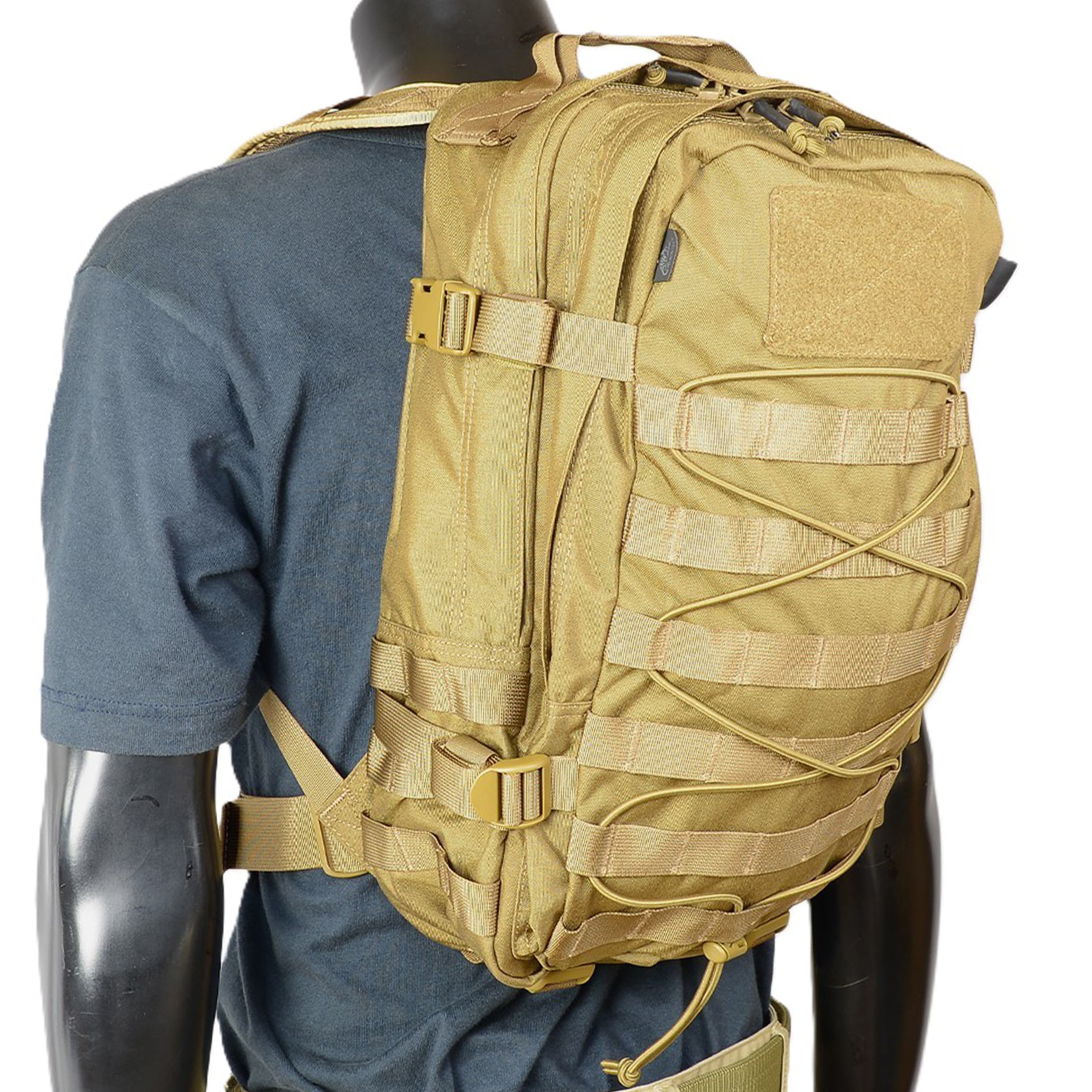 広い範囲にMolle/Palsウェビングを備え、アクセスしやすい表面に追加のポーチを取り付け可能。また、表面のショックコードでバタつかないように押さえることが可能。