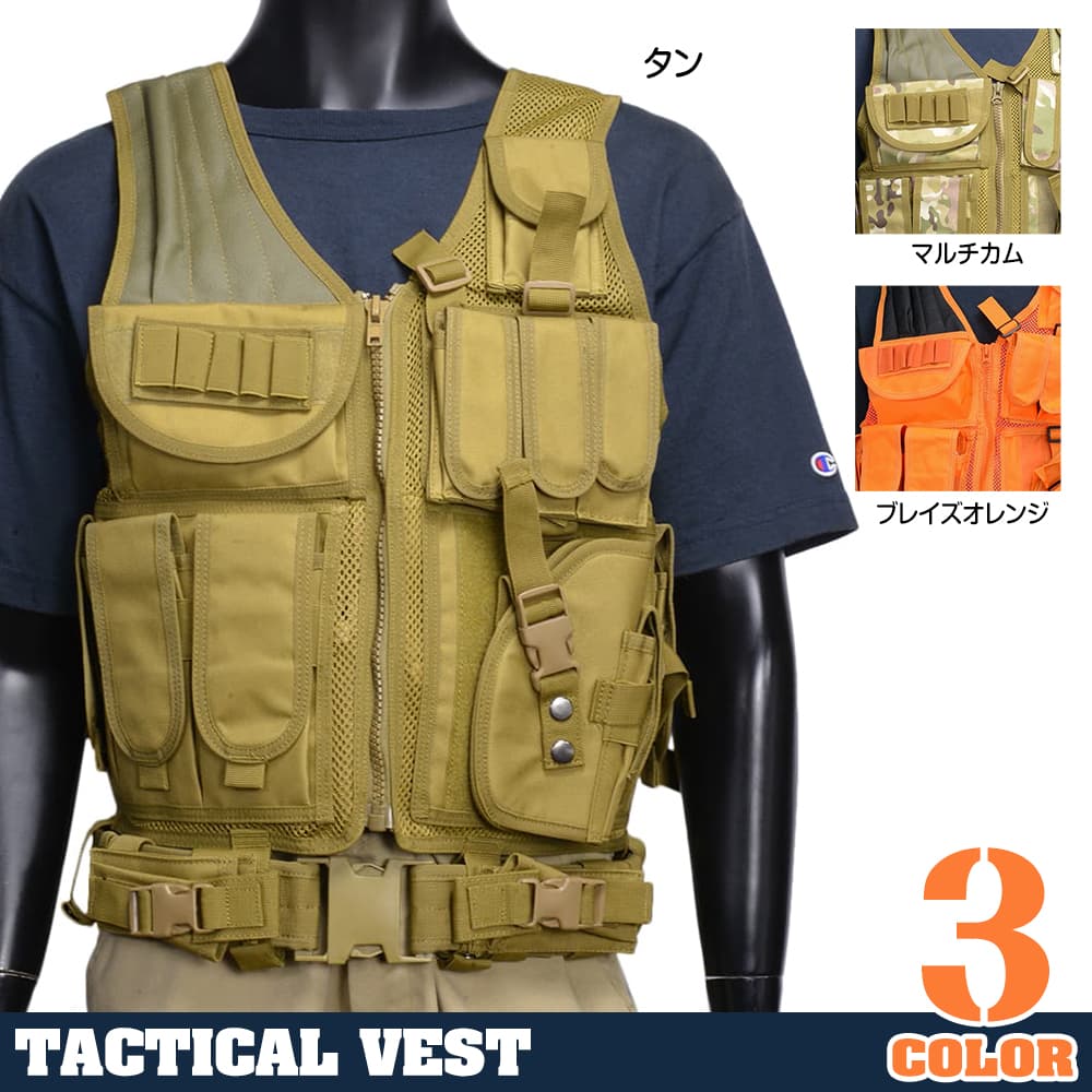 タクティカルベスト 固定式マグポーチ 着脱式ホルスター付き MOLLE装備対応 大判ベルクロパネルのレビュー、口コミ