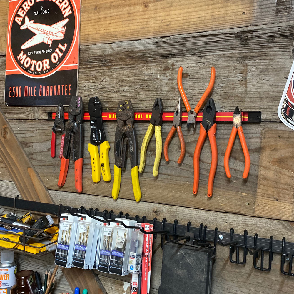 スパナ、レンチ、ドライバー、ペンチといった金属製の工具をマグネットのバーに貼り付けておくことができます。強力な磁気を帯びており、しっかりと工具をホールドすることが可能。乱雑になりがちな工具類を分かりやすく識別できるので、必要なときに工具を探す手間が省かれます。