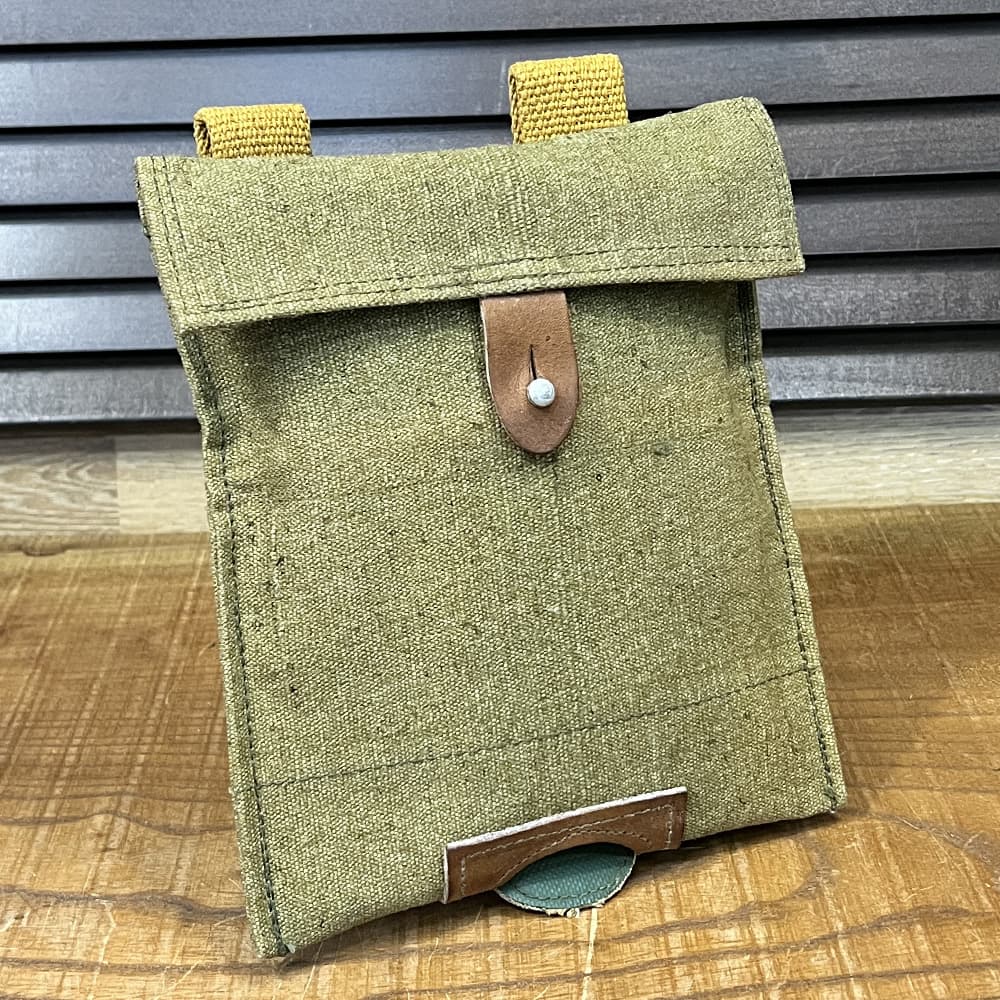 背面にはベルトループを備え、携帯性にも優れています。シンプルながら堅牢な造りが際立つ、実物放出品ならではの一品。