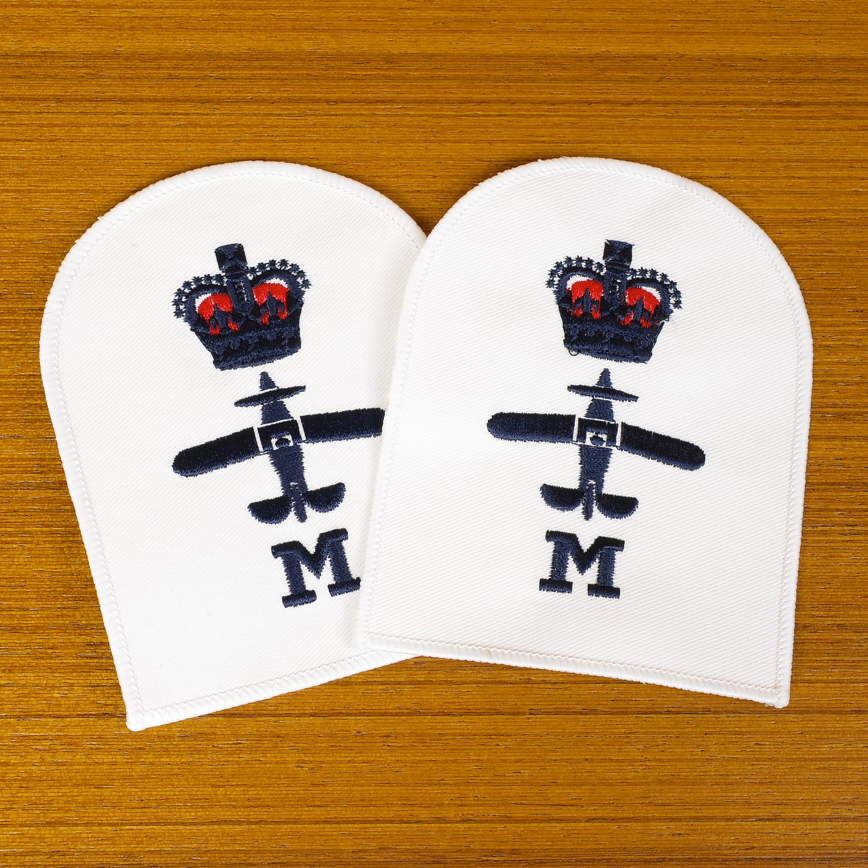中央には航空機シンボルが描かれており、これは「Fleet Air Arm(航空隊)」に属する職種バッジに由来するデザイン。