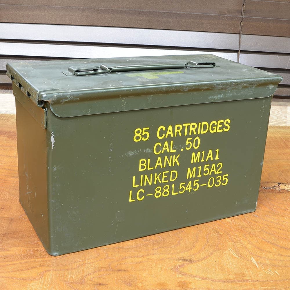 米軍で使用されている機関銃用の大型弾薬等を収納していた金属製の弾薬ケース。