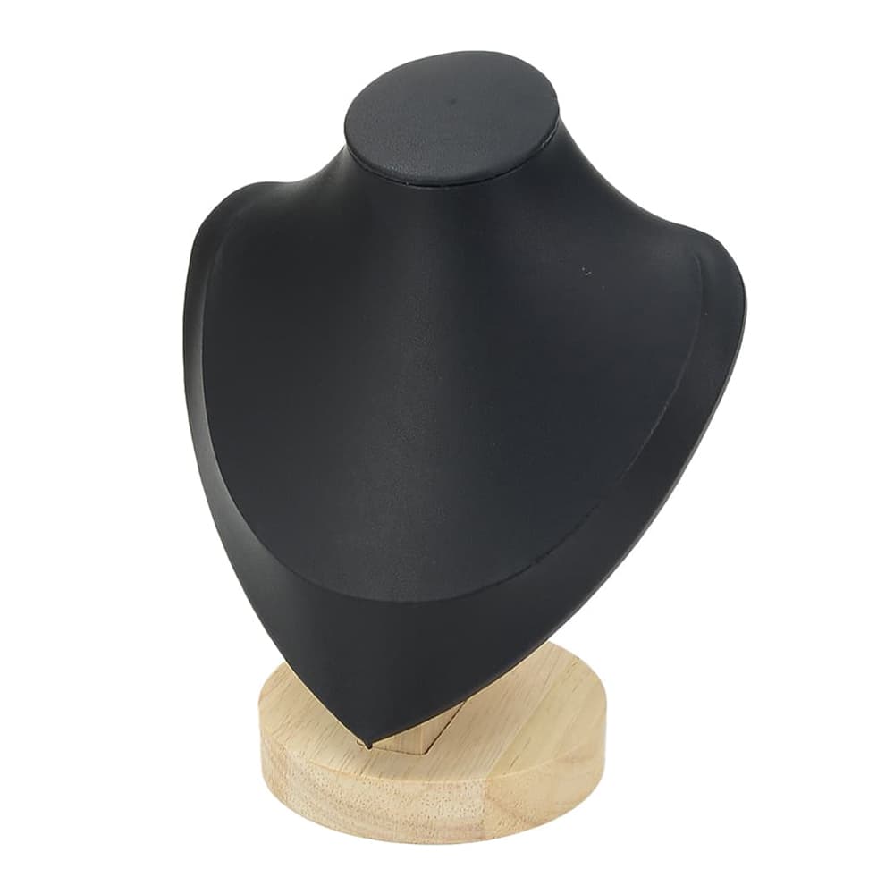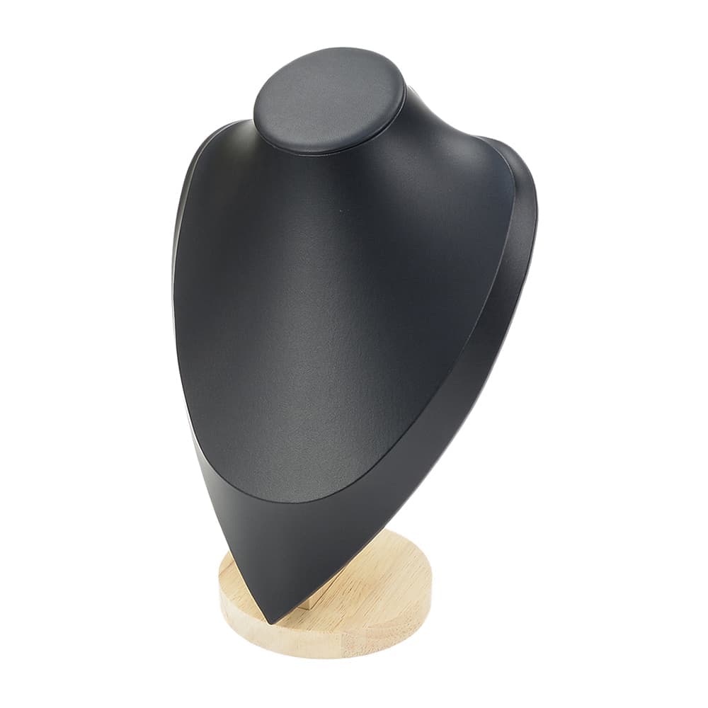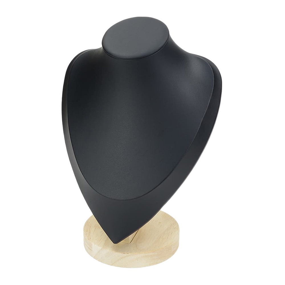 木製のベースと高級感のあるマイクロファイバー素材を組み合わせた、ネックレス専用のディスプレイスタンド。