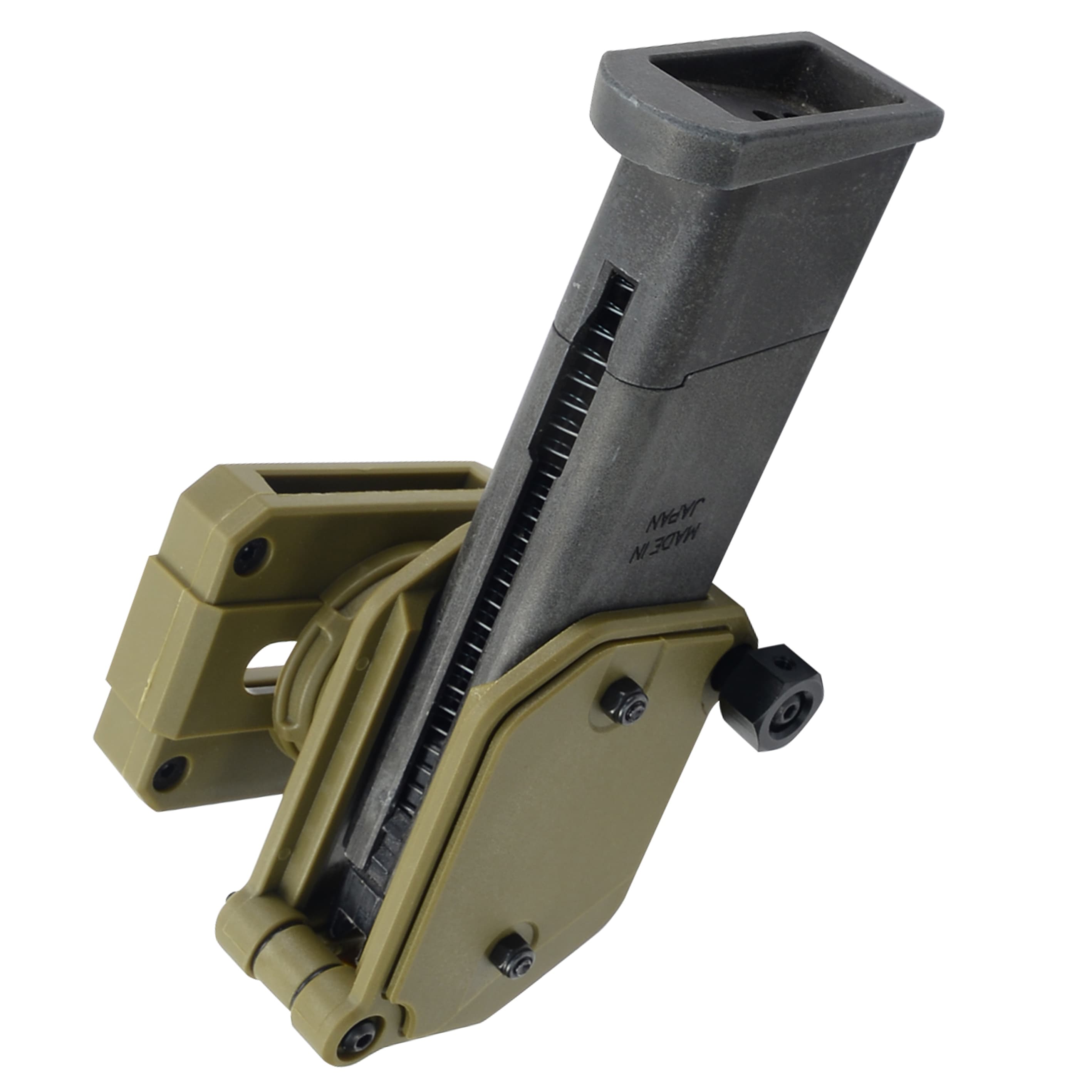 姿勢や射撃スタイルに合わせた最適な位置から、スムーズかつ確実にマガジンを取り出せます。