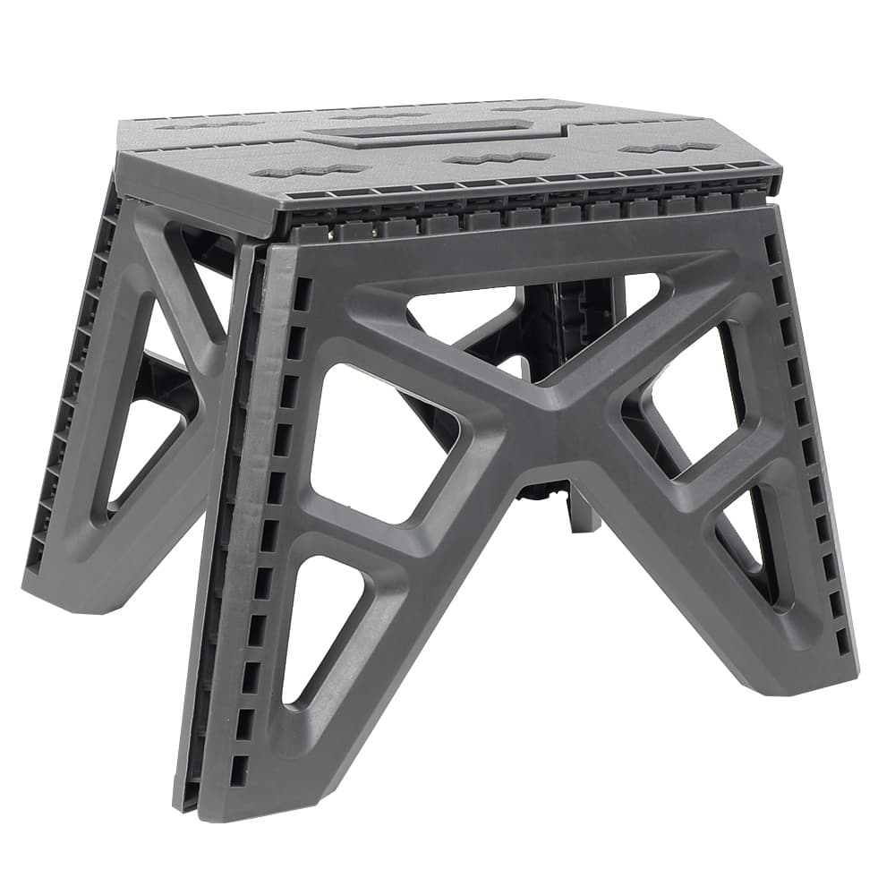 折りたたみ式のプラスチックスツール。頑丈なポリプロピレン製で、踏み台や椅子として利用できます。