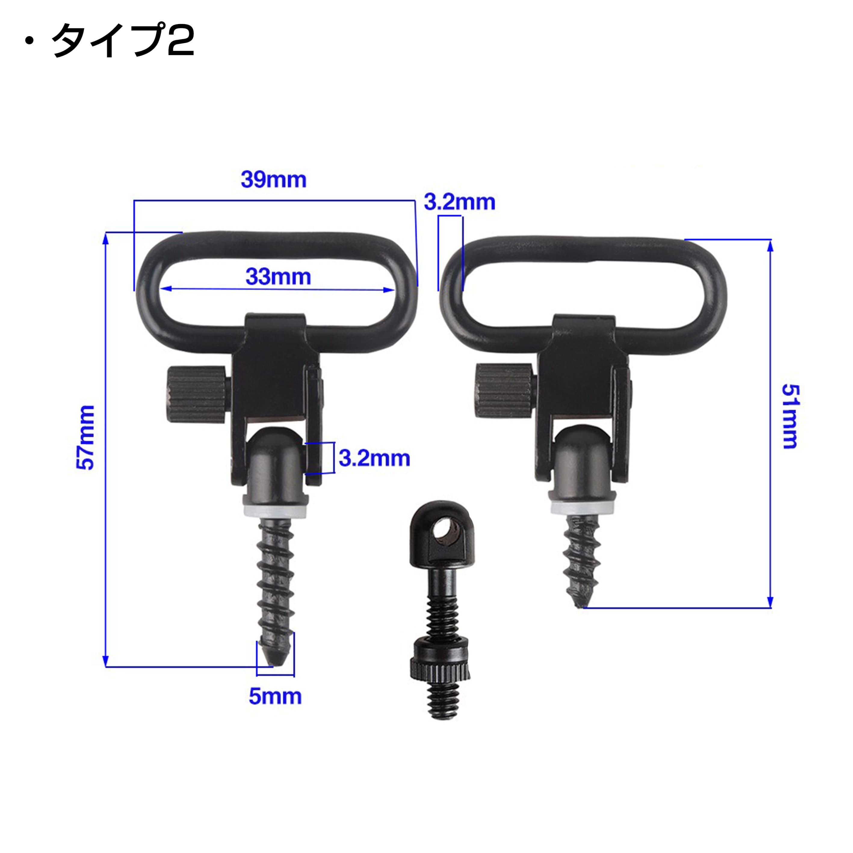 スリングスイベルと、木製ストック用スイベルスタッドのセット品です。