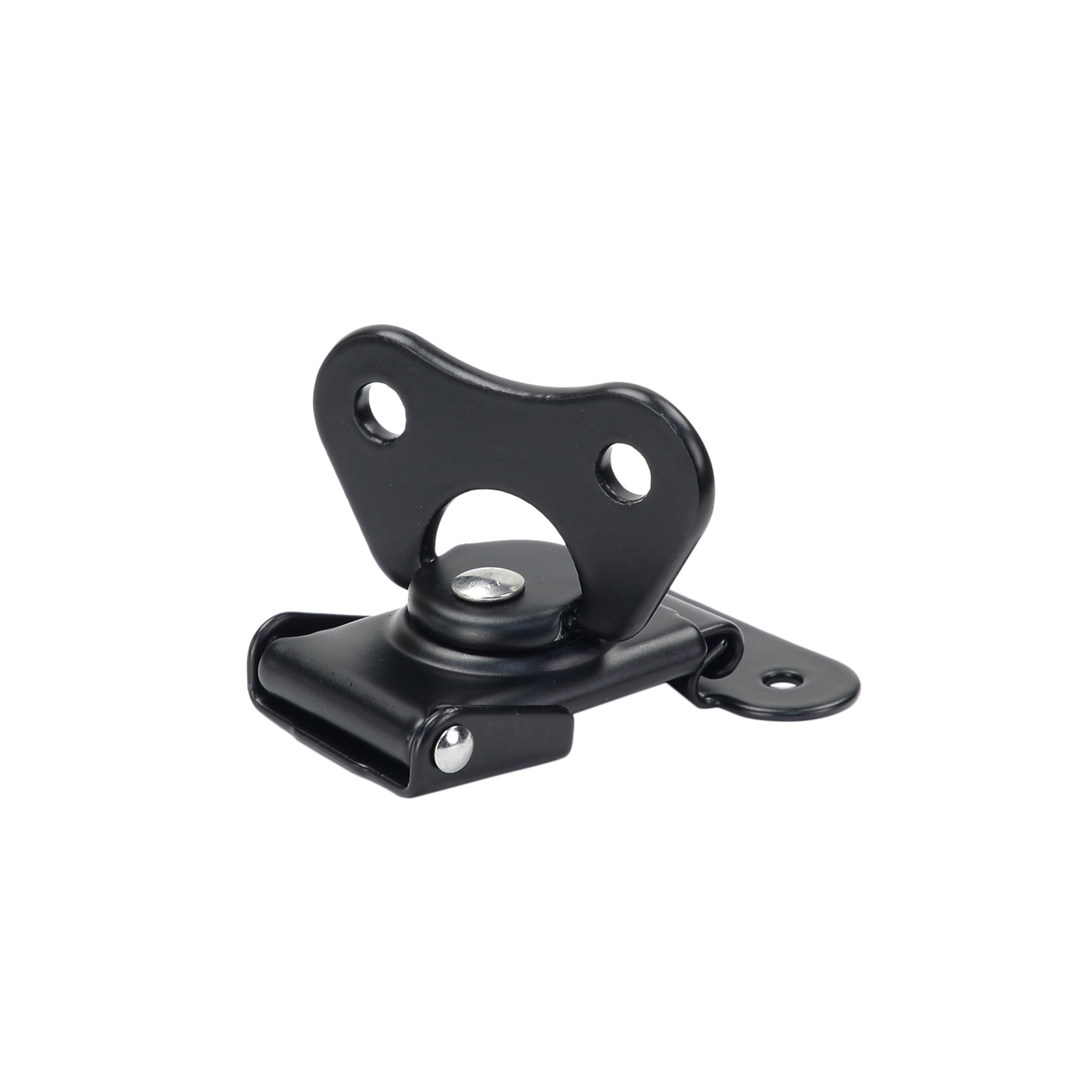 木箱やフライトケースの蓋をしっかり固定できるスチール製のバタフライロック。