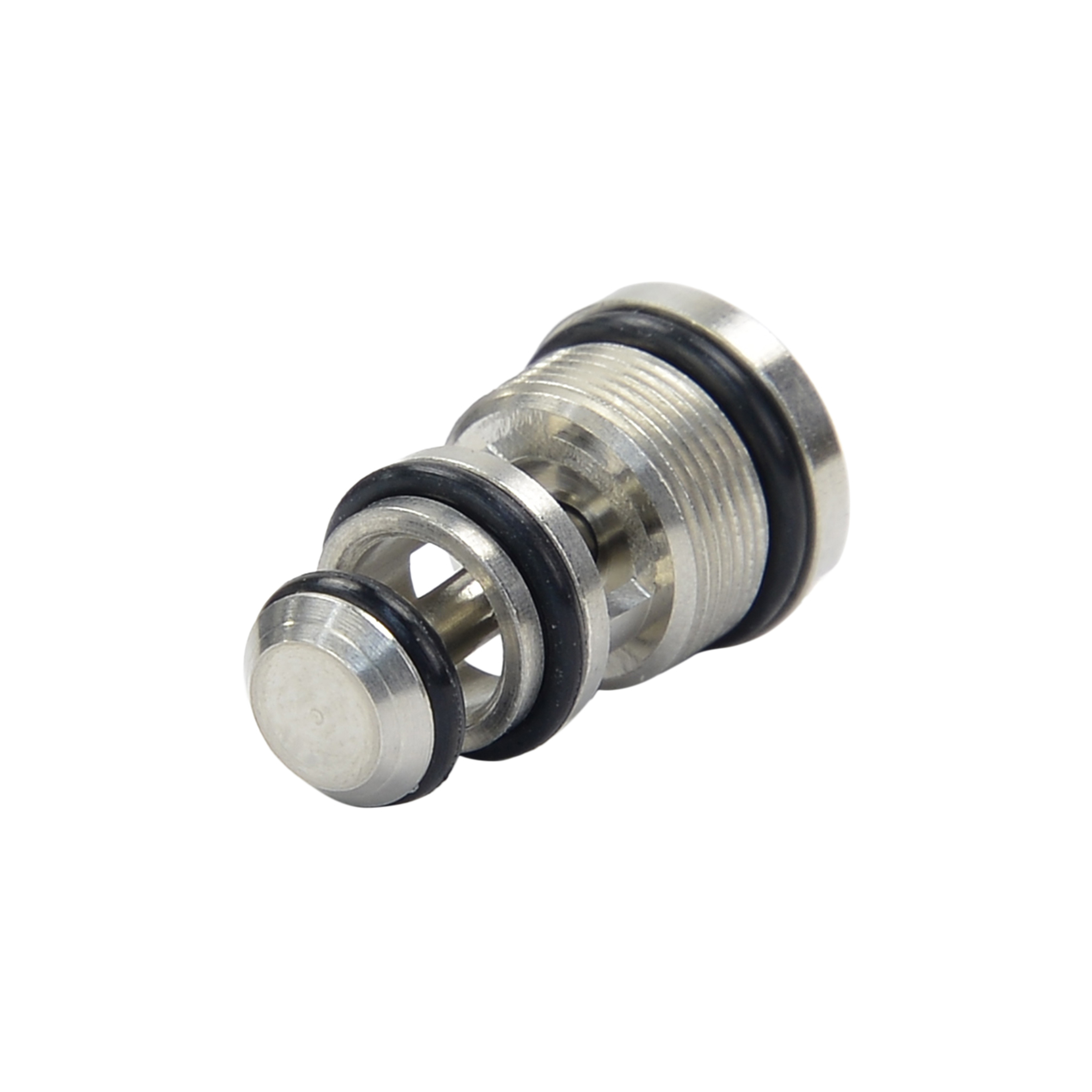 一般的なガスガンの放出バルブとは異なり、ガス圧のみでバルブ閉塞の動作を行うスプリングレス構造。
