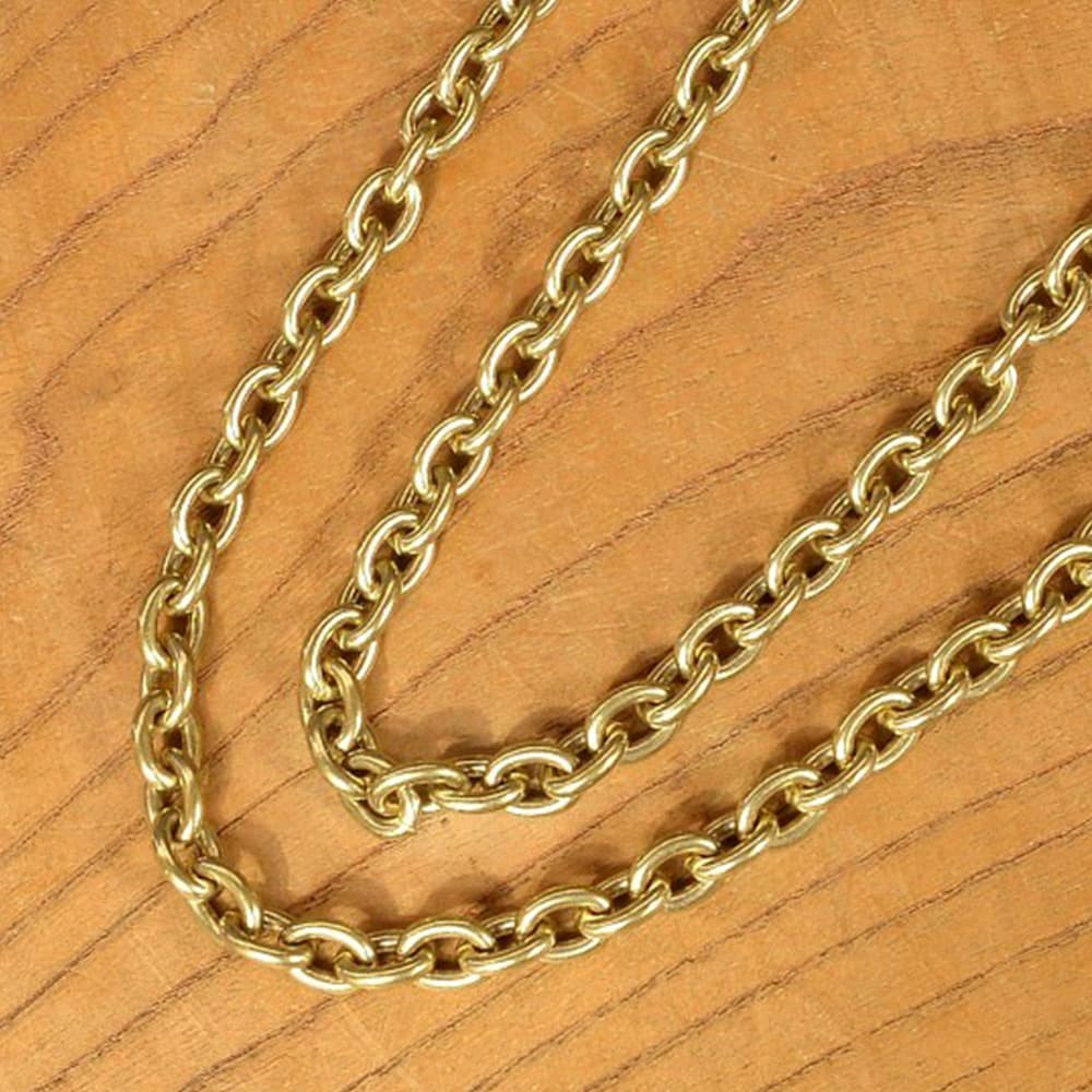 チェーンには丸カンを使用しており、馴染んでいくにつれて色合い深くなる真鍮製。