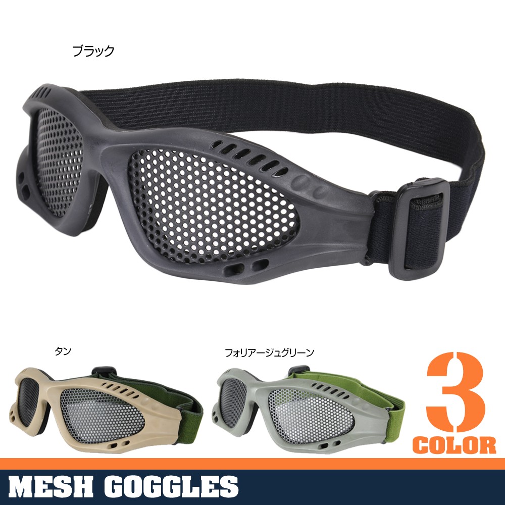 レンズの部分がパンチングタイプのメッシュになっているサバゲー用ゴーグル。