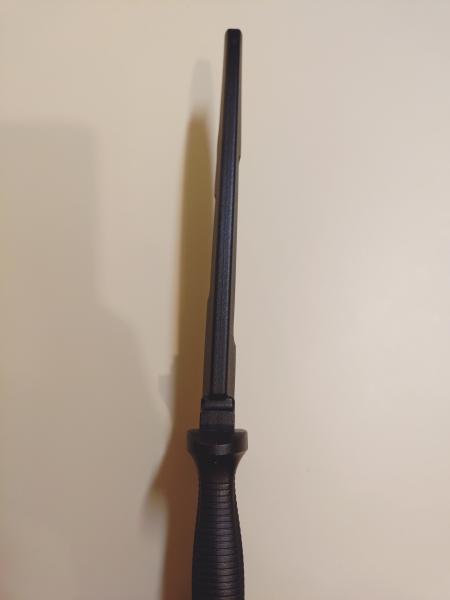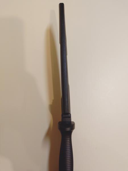 重量510gとの事ですがパッケージのヘッダーには21.2oz.(601.02g)と記されており実際に計測したら575.5gでした。コールドスチールは自社工場を持たないファブレスだったはずで製造元が変わったりして色々齟齬も起きるのかも知れない。自分は安くて頑丈なコールドスチールが好きなのであまり気にしないが。とにかくこんな大きなククリを所有できるだけでロマン。