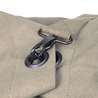 荒々しさとザラ付き感のある素材が特徴の、ヘビーウエイトキャンバス生地を使用しており、ハト目と金具だけでロックするズタ袋のような大容量のバッグです。