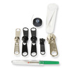 ソーイングセットには珍しく大小さまざまなジッパー(リバーシブル用含む)と、針と糸がセットのなったマクネットのジッパー修理キッド。