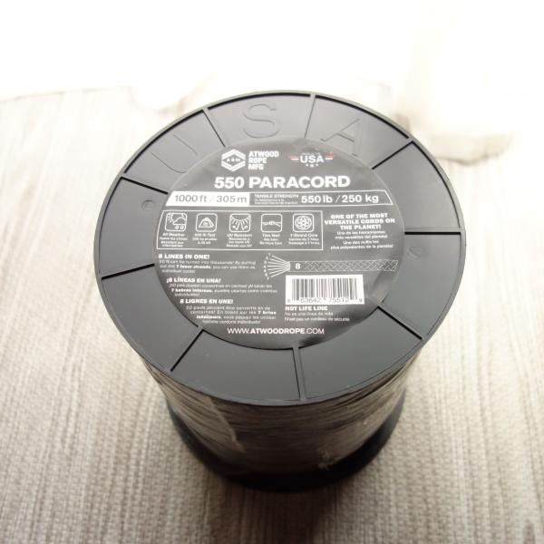 アメリカ最大のパラコード製品メーカー、ATWOOD ROPE(アトウッドロープ)社製の、ベーシックなカラーで周囲の色を引き締める効果がある、Black(ブラック)カラーの550パラコードです。