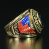 トラック運転手のためのカレッジリングです。サイドにはトラックと星条旗をデザイン。中央に約12×10mmのクリアのカラーストーンを使用し、ボディーにはエレクトロプレート(電気メッキ)を施してあります。