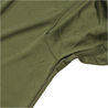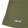 ポリエステル特有のサラリとした肌触りの、アンダーアーマーの半袖Tシャツ、ヒートギア ルーズ。裏表とも襟元から肩にかけて縫製ラインがあるタイプ。裾の右脇部分にアンダーアーマータクティカルの文字とIDを書けるようにしたタグがついています。
