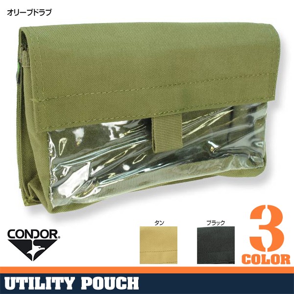 コンドルのVA7 パックインサートに取り付ける事が出来るVA7拡張ポーチ、ビニールユーティリティポーチ2個セットです。ポーチのフロントは、一部ビニールになっており中身を確認することが可能。背面は全面ベルクロのオスになっており、ベルクロのメスに貼り付ける事が出来ます。