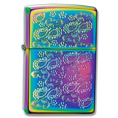 七色に輝くスペクトラムにペイズリー柄がレーザー彫刻により刻み込まれたZIPPO。