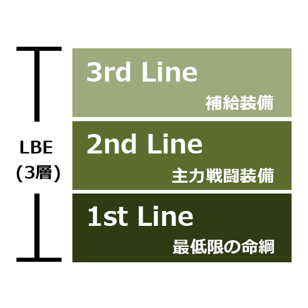 下記に3つの層(ライン)に分けて、ロードベアリング装備の基本的な構成を、Gear Lineごとに記載します。